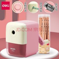 得力(deli) 卷笔刀自动进铅转笔刀儿童铅笔刀削笔刀男孩女孩刨笔机手摇削笔器小学生学习用品素描小型 【自动进铅+5档粗细可调】粉色+30支铅笔, 【自动进铅+5档粗细可调】浅蓝